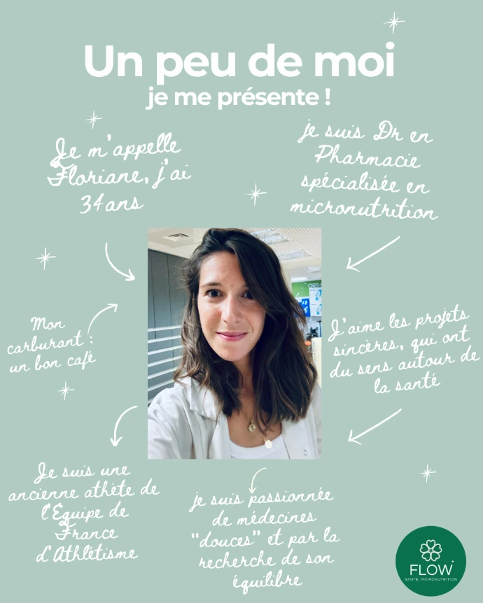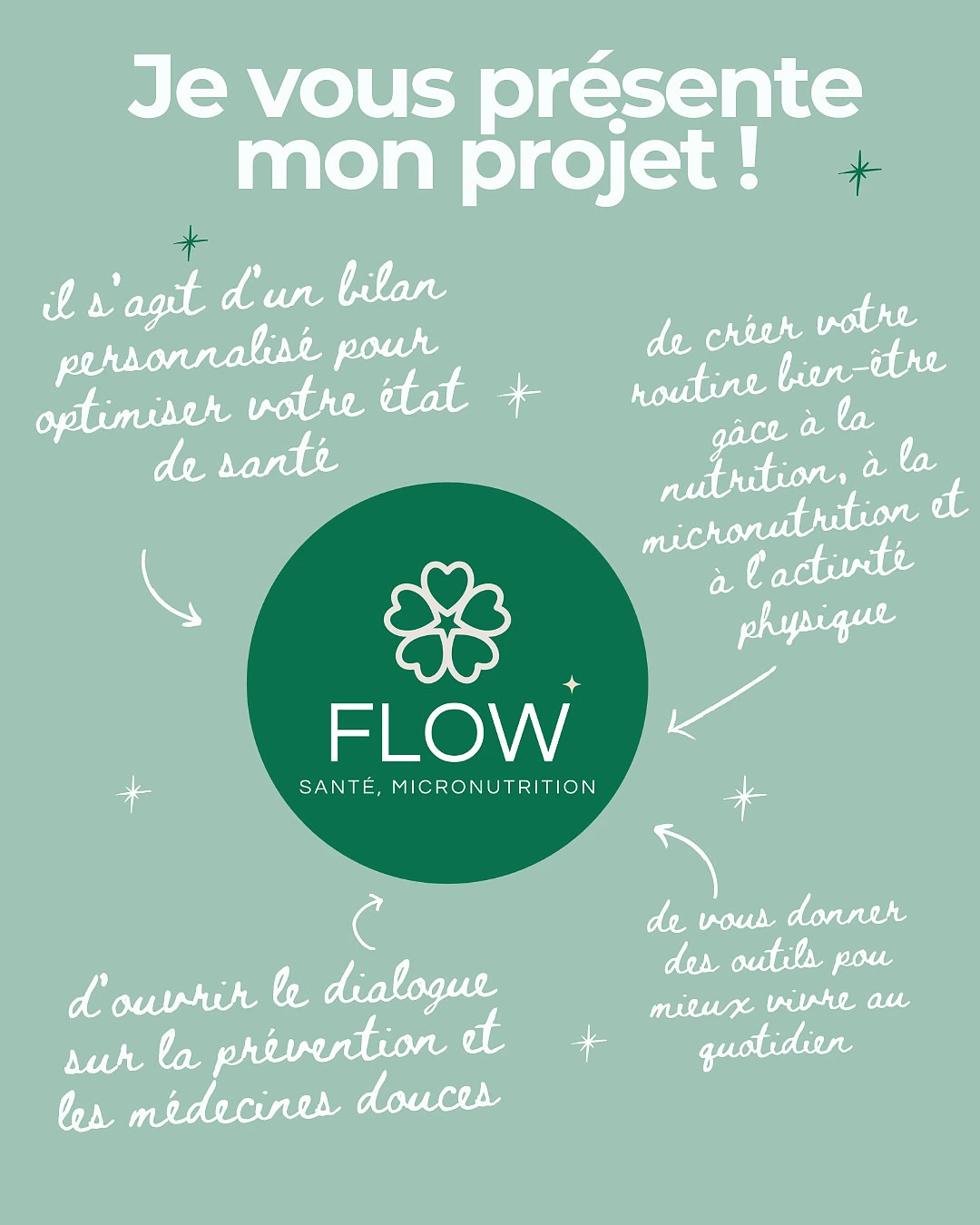 Je vous présente FLOW! Mon nouveau projet professionnel bâti sur tout ce que m’ont apporté mes deux professions: Dr en Pharmacie et Athlète! FLOW qui rappelle celui de la vie, du mouvement, et s’inscrit comme une philosophie de vie! FLOW, qui regroupe l’ensemble des outils et connaissances que je peux vous partager dans le but d’améliorer ou d’optimiser votre état de santé! Je souhaite créer avec vous une routine qui vous est propre afin de trouver votre équilibre, travailler sur vos maux, vous accompagner en nutrition et en micronutrition, mettre (ou remettre) en place une activité physique. Je veux donc développer la médecine préventive et naturelle.