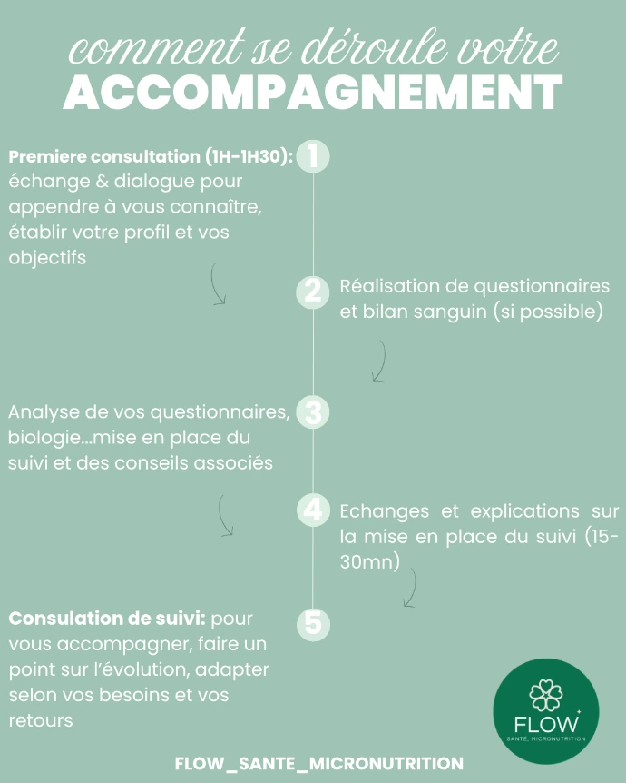 Le but de ce suivi est de s’adapter à vous et à vos besoins. Dans un premier temps, nous pouvons échanger ( consultation en Visio, ou en physique: au Raincy 93, au centre Korpus Santé Enghien-les-Bains), pour apprendre à se connaître, questionner vos besoins, vos attentes et mettre en avant un ou plusieurs objectifs sur lesquels nous pourrons travailler. Dans un deuxième temps, je vous fournirai des questionnaires détaillés (et si possible réaliser une prise de sang) que j’analyserai pour élaborer une prise en charge. Tout Suivi demande une collaboration à plus ou moins long terme avec des bilans intermédiaires si vous le souhaitez.
